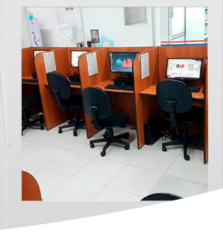 Contando com quatro estações de trabalho equipadas com novos computadores e uma estação para uso de notebook. As salas contam com café e água, carregadores de celulares, mesa de Trabalho, WI-FI, escâner e cópias.